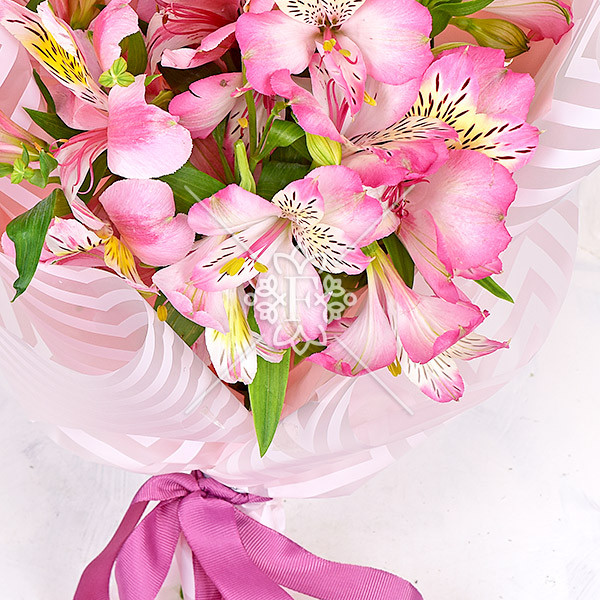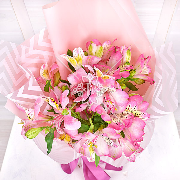 Удивительная альстромерия нежно-розового оттенка покорит прекрасную девушку, которой будет предназначен этот цветочный комплимент.